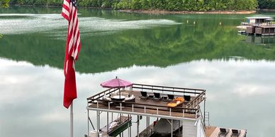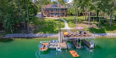 The dock is 49 generous paces away, from the Lodge and is on a gentle slope. It has a large, upper level "Gathering" deck, that is 820 sq. ft. If you are looking to get off the mountain and enjoy a large outdoor flat surface, this upper deck will meet your needs. It is perfect for entertaining and stargazing, Tennessee style!